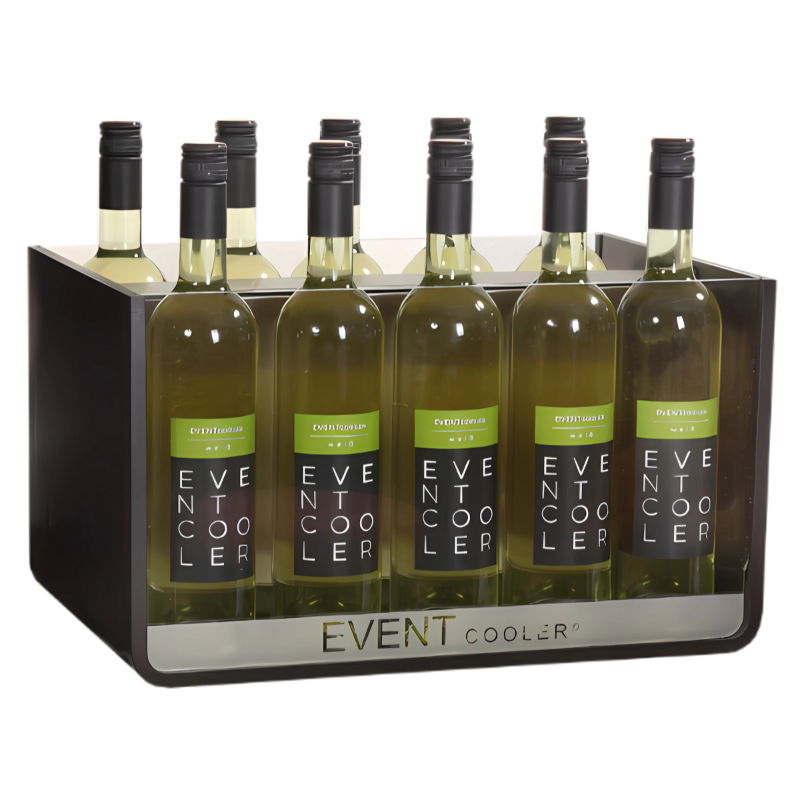 Eventkøler Vario 10 - elegant og effektiv vinservering Eventkøler Vario 10 er den perfekte løsning til professionelle vinsmagninger, messer og udendørs arrangementer. Den holder dine rød- og hvidvine ved optimal drikketemperatur i op til 10 timer - he